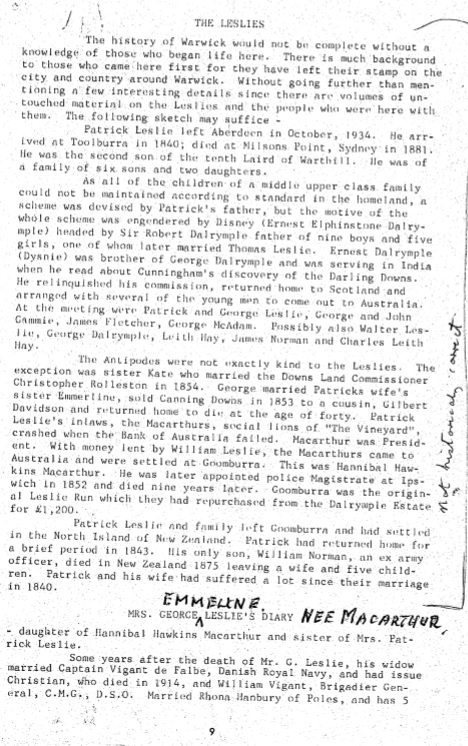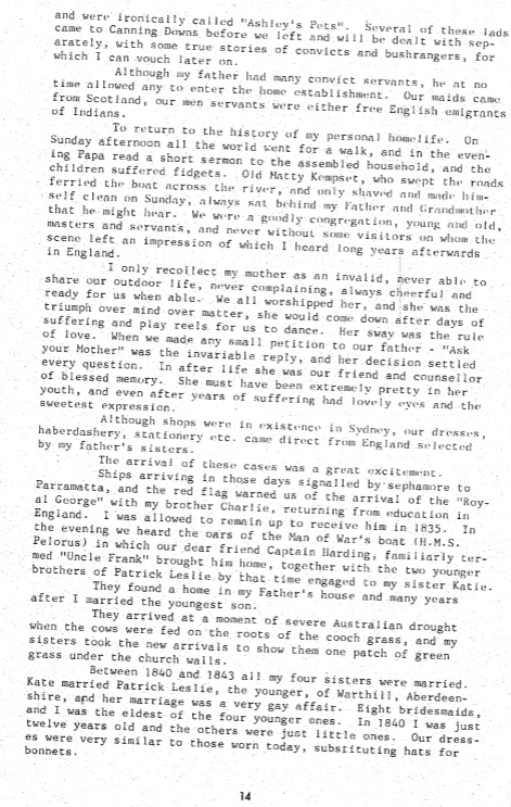 Emmeline Leslie (nee Macarthur) in 1909 wrote recollections of her earlier life * * * page 1 click here for page 2 |